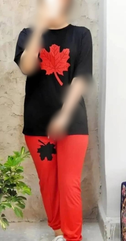 ست بلوز شلوار طرح برگ، جنس سوپر اسپان درجه 1،کشسانی بالا،قد تیشرت 65،قد شلوار 95